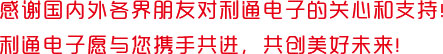 我相信,通過利通新網(wǎng)站這一平臺,能夠進(jìn)一步加深廣大新老客戶對利通的了解和信任,能夠進(jìn)一步增進(jìn)新老合作伙伴友好關(guān)系的發(fā)展,能夠促進(jìn)利通電子實現(xiàn)“創(chuàng)新創(chuàng)優(yōu)服務(wù)社會,增收增效回報股東”的企業(yè)愿景!